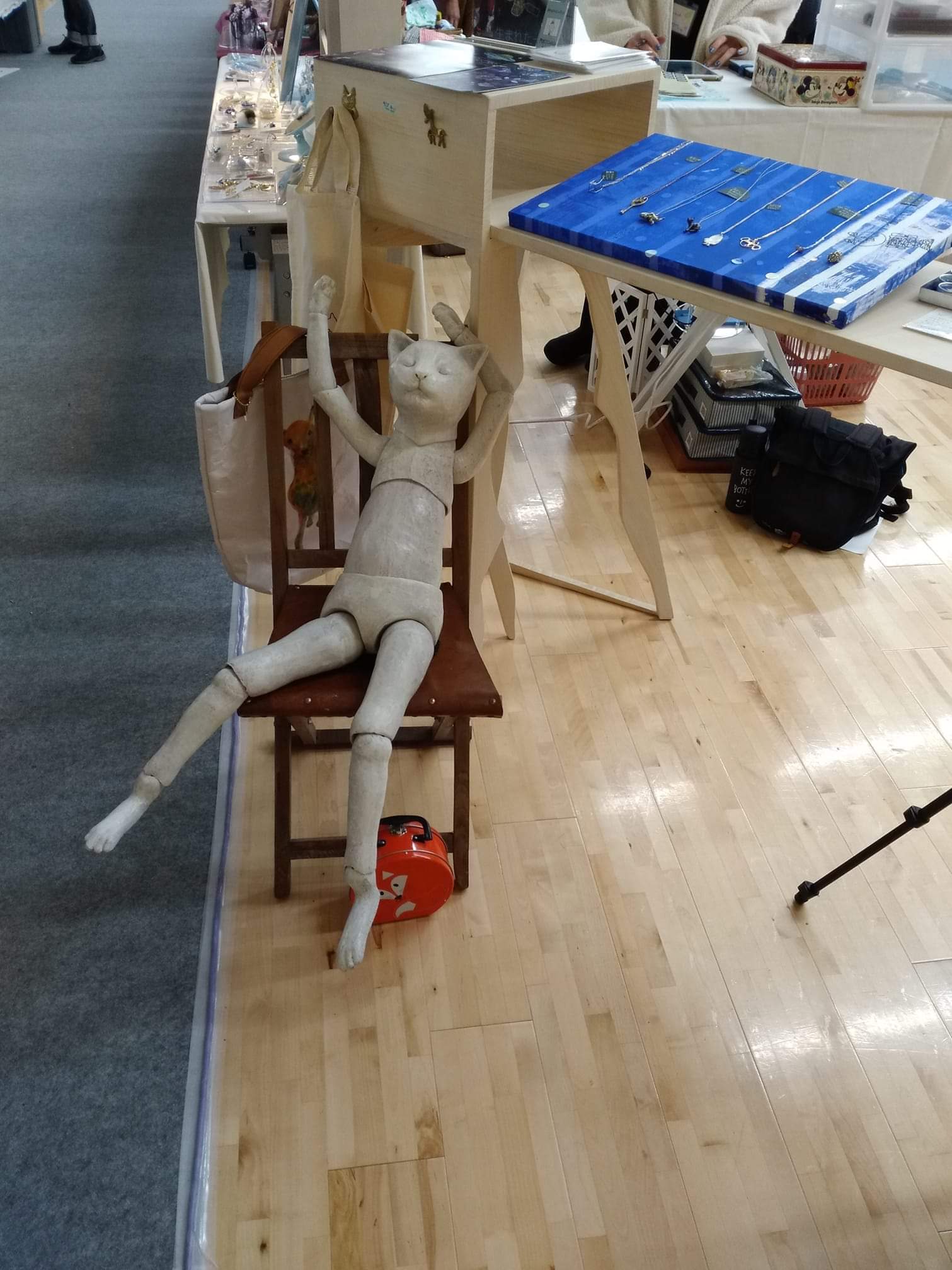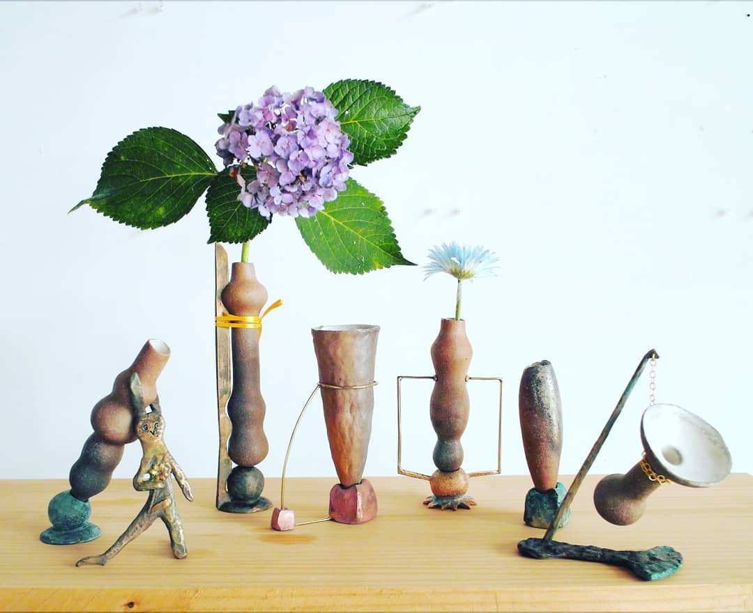 人魚のネックレスには、陶に青いガラスを溶かして海色の皿を作ったし、ピアスには拾った石に必死で穴を空けて展示台を作った! 主役は「髪の長い馬」なのだけれど、小さい子なので、友情出演でインドネシア生まれの大きな馬を連れて行きました。