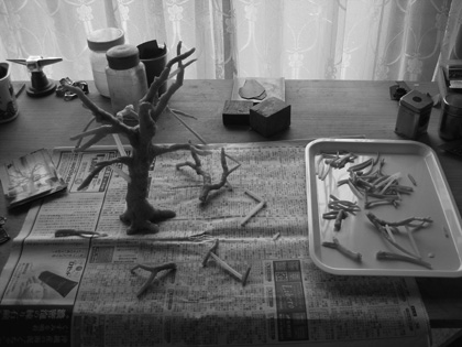 工房がモノトーン 2015年08月29日 ひとりごと 0 先日完成した木の作品を鋳造屋さんにお願いしたのですが、あいにく原型が壊れてしまって帰って来ました。元の感じもすっかりなくなってしまったので、作り直しです。剪定された枝をくっつけ直すことがどんなに難しいことか、知りました。現実世界でそんなことないけど。 PR