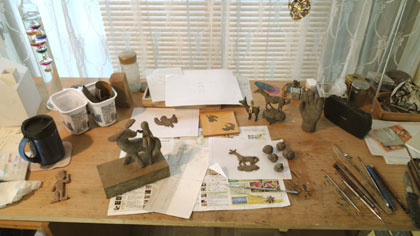 工房がモノトーン 2015年08月29日 ひとりごと 0 先日完成した木の作品を鋳造屋さんにお願いしたのですが、あいにく原型が壊れてしまって帰って来ました。元の感じもすっかりなくなってしまったので、作り直しです。剪定された枝をくっつけ直すことがどんなに難しいことか、知りました。現実世界でそんなことないけど。