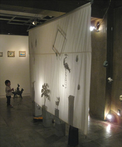 Pepper's Galleryでの個展、今日からです。 2012年09月24日 さんにんいじょうごと 0 昨日は一日中、搬入展示に終われボヨンボヨン。無事に今日から個展が始まりました。http://www.peppers-project.com/インドネシアから持って帰って来た影は、自然と定位置に着き、空間を成していった。
