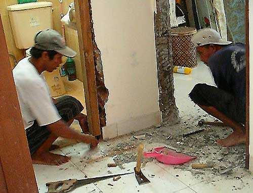 壁、粉砕の日 2010年05月01日 ふたりごと 0 シロアリに食べられたうちの木の部分を取り替えるために、大家が呼んだ職人が、今朝登場したと思ったら、木の辺りのコンクリートごとブチノメシテぶち壊した。それはそれは突然の轟音と共に始まり家中瓦礫まみれにいたしました。続きは明日ということですが、これはシロアリ問題の根本解決に繋がるのか?