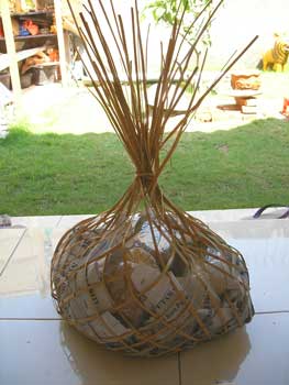 これがエコバッグ 2008年10月22日 鋳金-Cor-Casting 0 街のバティック用の蝋屋さんでロストワックス鋳造用に蝋を5kg買ったら、こんな入れ物に入れてくれました。ちょっと持ちにくいけれど、いい。