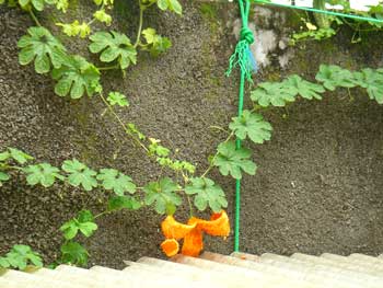 祝鞴祭り 2008年11月08日 鋳金-Cor-Casting 0 ふいご祭なのに本日も大雨です。工房の屋根にまとわりつくゴーヤのひとつが黄色くなって大爆発して、真っ赤な種をまき散らしました。こわいね。ふいごさま、これからも無事に作業できますように。