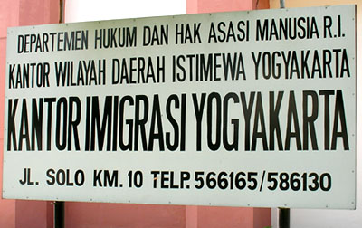 ジョグジャカルタのKanor Imigrasi 2008年01月31日 さんにんいじょうごと 0 ジョグジャカルタのKanor Imigrasi(入国管理局)の営業時間変更のお知らせ!!2008年2月1日から、週5日制になるそうです。月曜日から金曜日は朝8:00-夕方16:30まで。月曜日から木曜日の休憩時間は12:00ー13:00、金曜日の休憩時間は11:30-13:00申請書類の受付は、月曜日から金曜日の8:00から15:30まで。土曜日がお休みでも夕方までやっている方が助かりますね。イミグレはで地震でひび割れたままの建物ですが、いつ直すのかな?ついでに、いつのまにかビザ代も値上げ されていました。Perpanjangan Ijin Tinggal Rp.250.000.-Ijin tinggal terbatas(KITAS) 6 bulan Rp.350.000.- 1 tahun Rp.700.000.- 2 tahun Rp.1.200.000.-