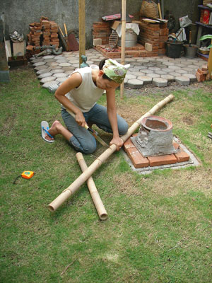 Bamboo 2008年06月04日 鋳金-Cor-Casting 0 大きな作品を作るためにまず竹で彫塑台を作る。竹を切りに竹薮へ出向かなくていいだけよいとする。近所で竹(約3m×2本)とシュロ縄(山程)を買う。