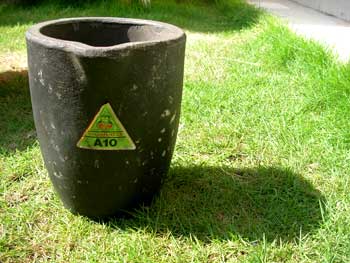 るつぼつぼ No.2 2008年12月05日 鋳金-Cor-Casting 0 SALAMANDER社製の10kg坩堝を手に入れました。ジョグジャの鋳造職人さんの話によると、某社の坩堝は底が抜けたから、ちょっと値が張ってもSALAMANDER社の坩堝がよい。底がぬけぬけ、るつぼつぼ。そんな危険な話はないですね。
